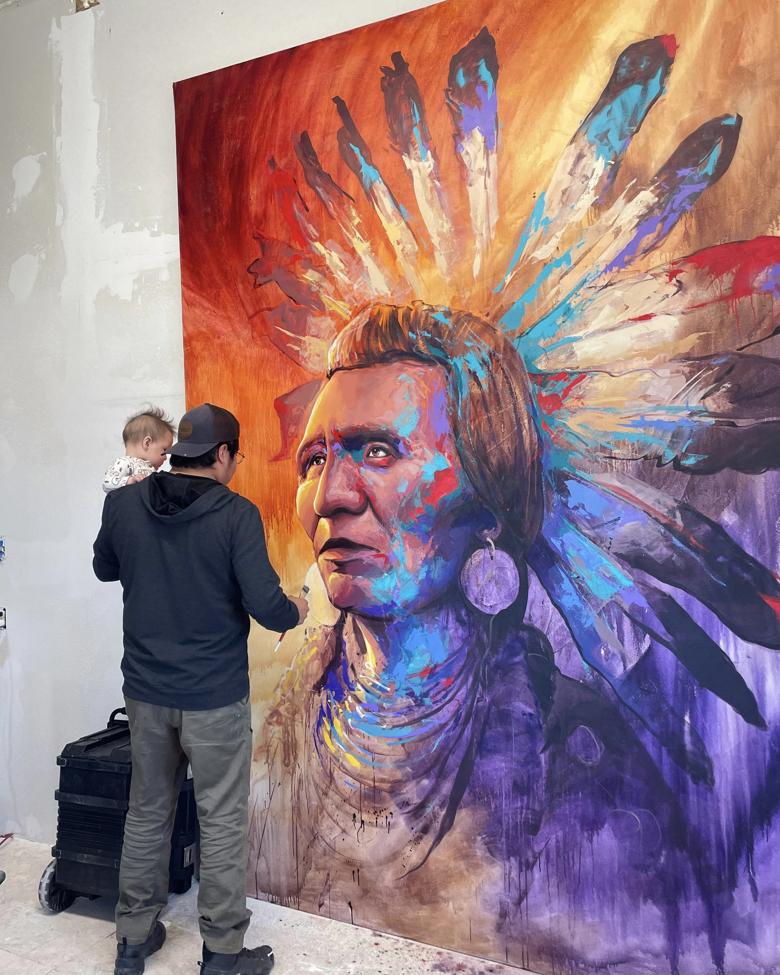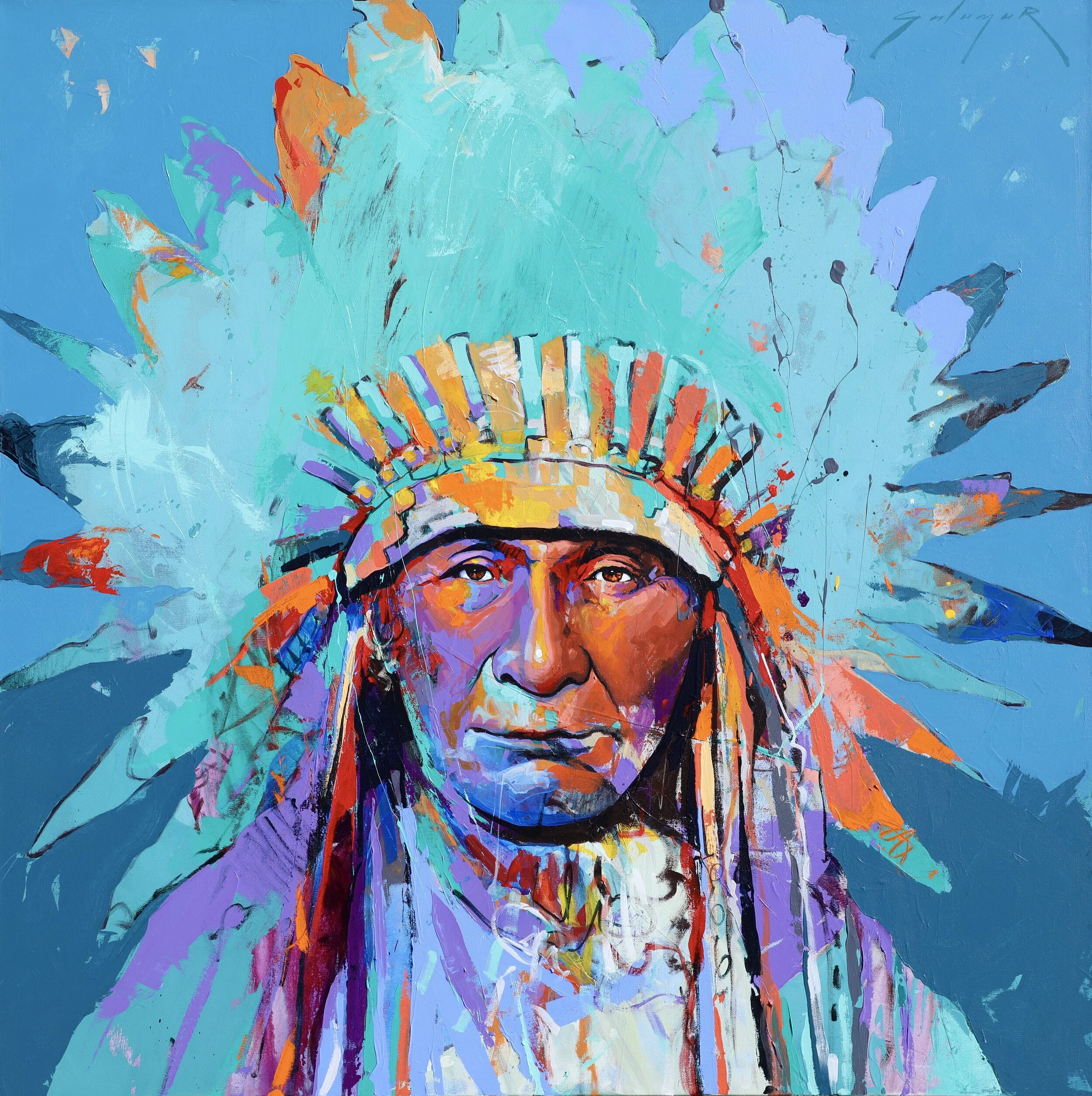 Using a bold and vibrant color palette in every painting, jeremy has come on scene as a promising emerging artist. Making both a statement of reclaiming authentic native artwork done by native hands and also painted stories of color and faces of the Native American people.